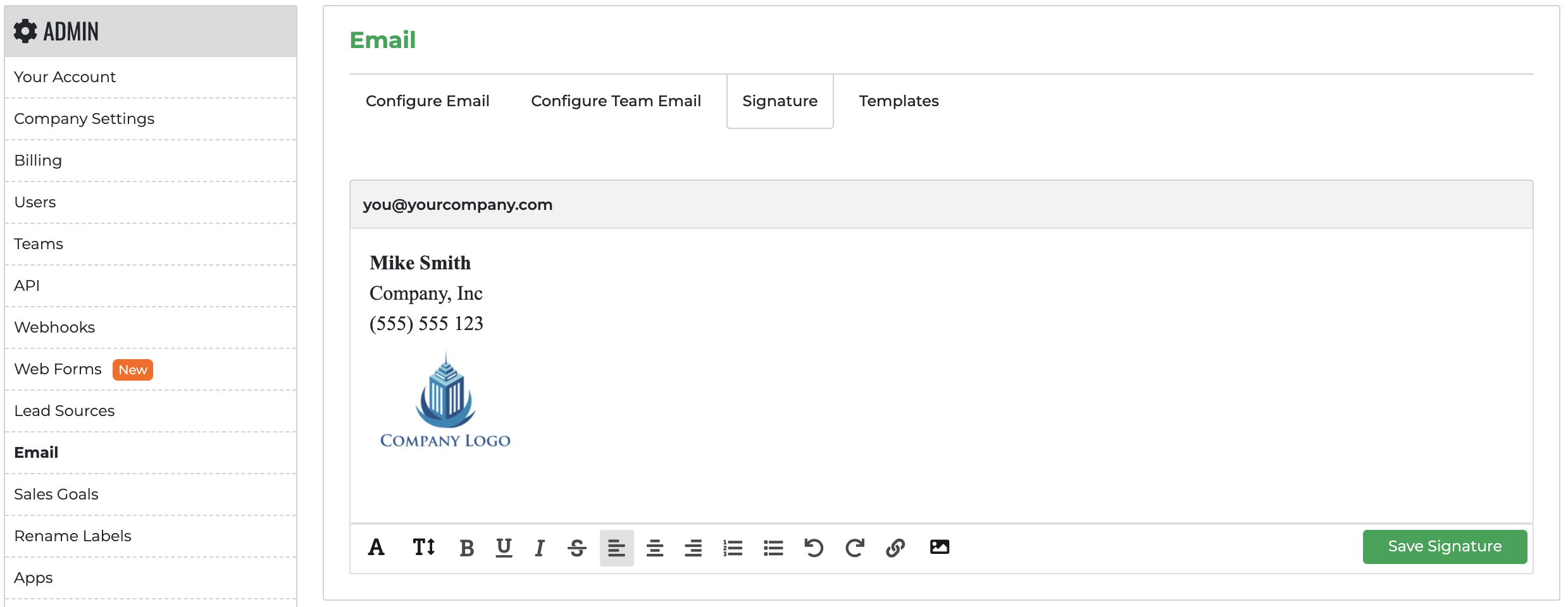 To customize your email signature, navigate to Settings > Email then select Signature.